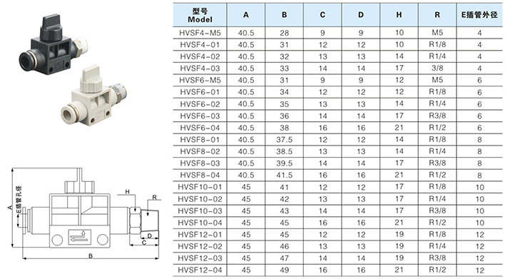 快插式气动接头系列选型尺寸图
