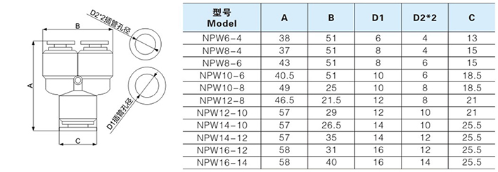 快插式气动接头系列选型尺寸图